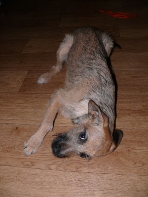 Знакомьтесь, Офелия (Фелечка, Феля), была найдена вчера на Студенческом рынке, сидела столбиком и грустно заглядывала в лица прохожих. Ей примерно 4 месяца, мордочкой похожа на жёсткошёрстную таксу, но лапки длиньше. Будет меньше среднего роста.