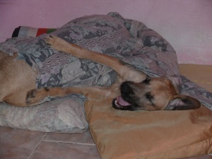 Причём у нас есть зоны, где собаке вход запрещён (где кровать, например), так она это уже уяснила, туда вообще не проходит, ложится, если что на границе. По кроватям и диванам лазить не будет (Учитель у неё хороший