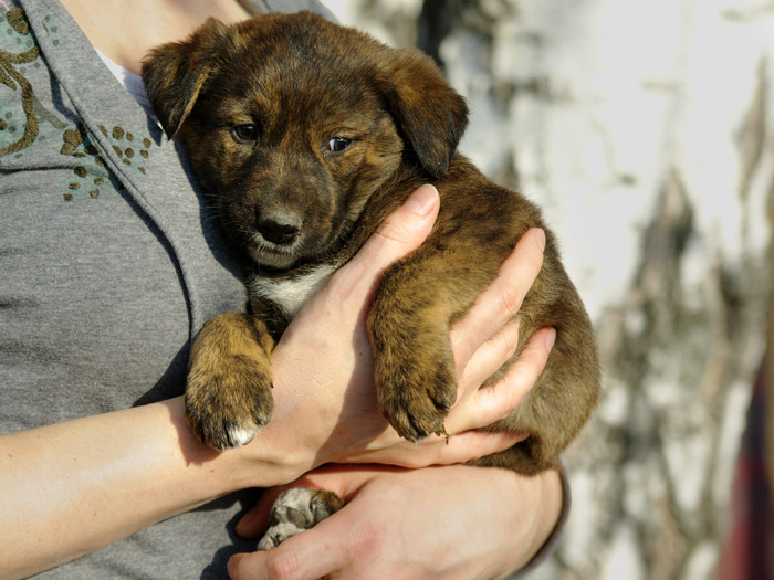 И наконец, самая красивая и эксклюзивная девочка - Тигра. Шикарный тигровый окрас, умные глазенки и верное сердечко - Тигра тоже может стать вашей собакой!