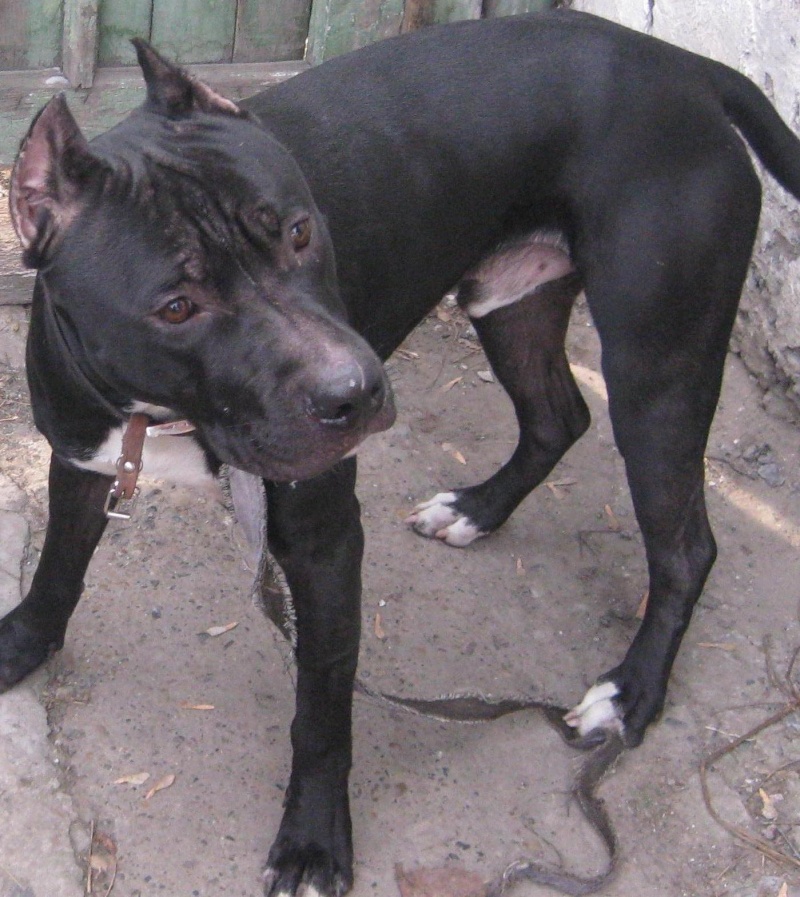 Вчера на горском жилмасиве найдена собака. Порода стаффордширский терьер. Окрас черный.
