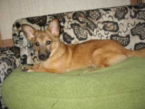 Собачка маленькая, размером с кошку. Очень ласковая. Молоденькая, возраст около года. Как выяснилось, любит женщин и детей.