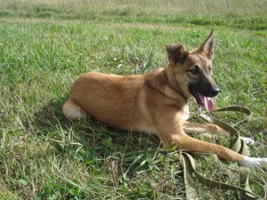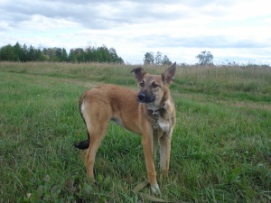 А вот есть еще овчароподобная мадам, возрастом 1 год, стерелизованая. Активная, прыгучая, громогласная и такая охранная. Зовут Аля.
