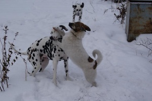 Не плохо было бы стерилизовать девченку. А то присторой может продлиться не один месяц, как бы потом еще и щенкам искать хозяев не пришлось.