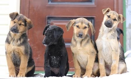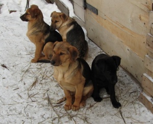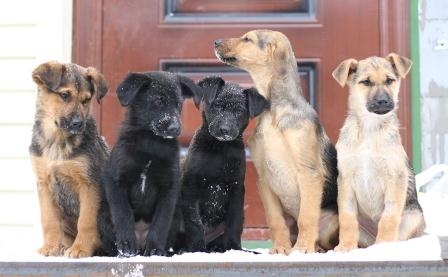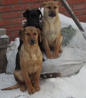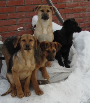 Метисы. Родились от суки легавой (по каким-то причинам выброшенной на улицу) и дворняги. Сейчас на передержке в Дзержинском районе.