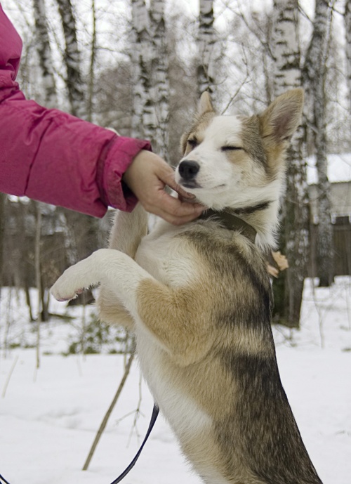. Очень красивый (окрас - разные оттенки серого и бежевого с белым), утонченный, с большими выразительными глазами. Умненький и ласковый мальчишка.