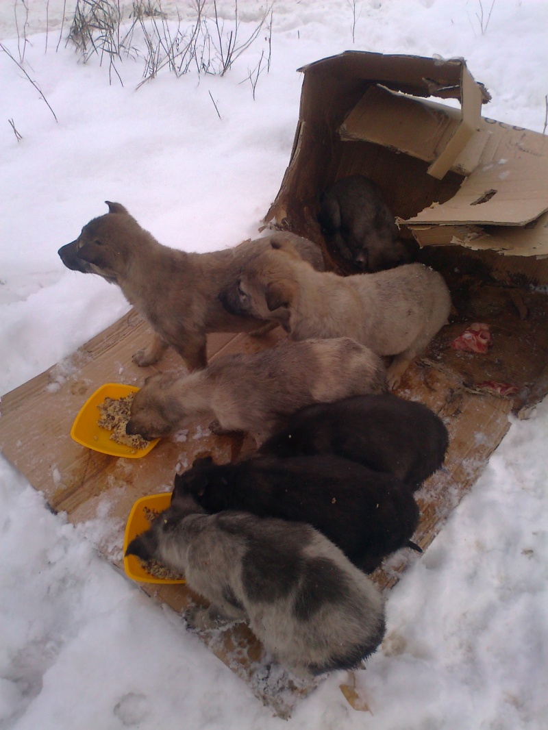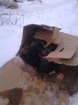 Вышла от родителей, которые живут в соседнем доме и просто увидела коробку..точнее то, что от неё осталось с щенками...посчитала...их было 7.