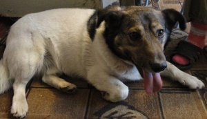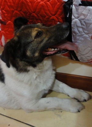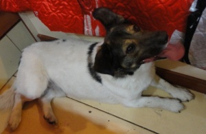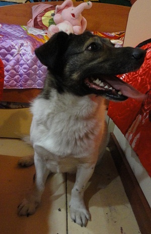 , и даже с этим крепко сидящим жгутом на шее не переставал радоваться жизни. Пока снимали с него эту грязную веревку, он все ладони облизал. Потом, после освобождения, подбежал к чашкам с едой и пока кушал, все хвостом навиливал.