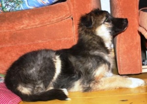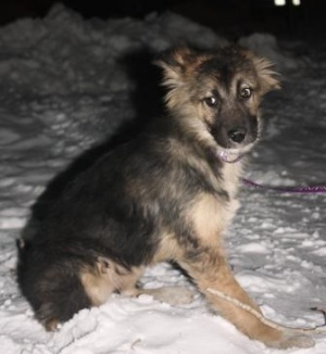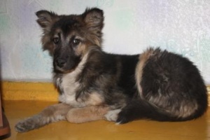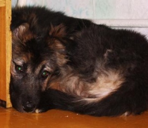 Вчера подобрала щенка, нельзя было пройти мимо, и время 22-00, как представила, ночь-холод и он среди всего этого. Щенок девочка, назвали Малышка, возраст 3-4 месяца, овчароидного типа, скорее всего мама овчарка, а папа дворянского происхождения.