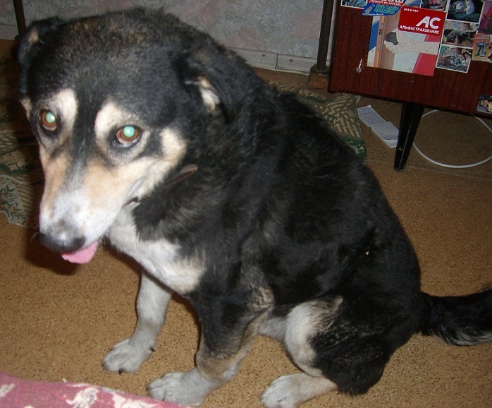 Лестниц,лифтов не боится,в квартире ведет себя хорошо,не лает,не грызет,просто тихонечко подходит,кладет голову на колени и смотрит тебе в глаза