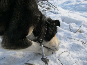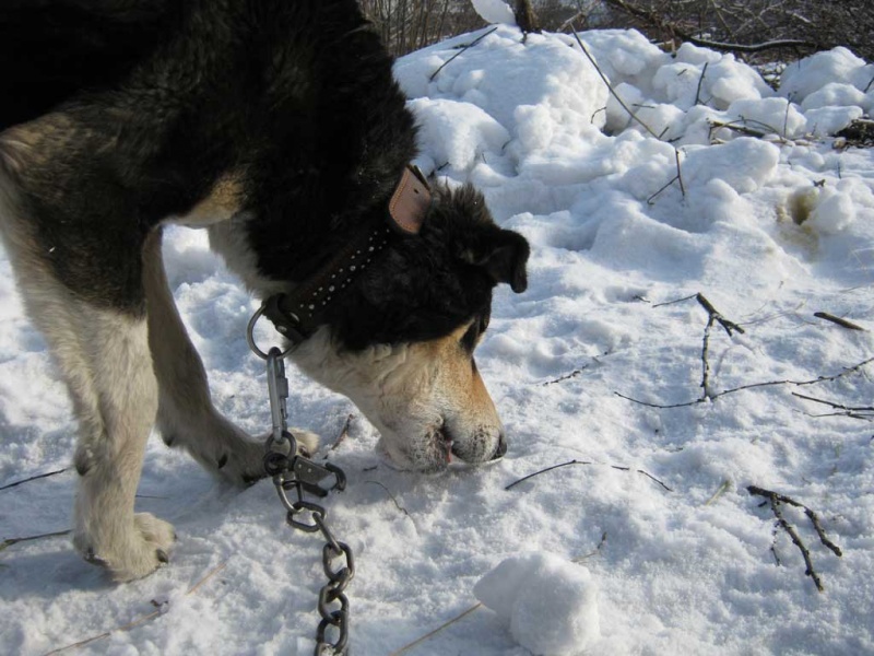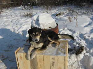 Вчера были у Графа в гостях на передержке.Граф отличный охранник,хорошо сидит на цепи и любит спать в своей будке. Малыш знает команды сидеть и даёт лапку.