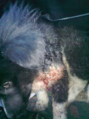 Щенка чуть не порвали бездомные собаки. Мы лечили его в клинике Сириус, теперь забрали домой. Бим еще не полностью окреп, две ранки еще полностью не затянулись. Сегодня ходили учиться гулять на улицу на поводке. К моим животным спокойно относится. Через неделю поедем к врачу.