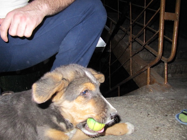 Дня три как у нас в подъезде появился замечательный пёс, очень резвый, весёлый, заводной, очень любит играть.Так как живёт в подъезде - долго его здесь не оставят, кто-нибудь да выгонит, пока никто не видит... Сам бы взял - но у меня кот.