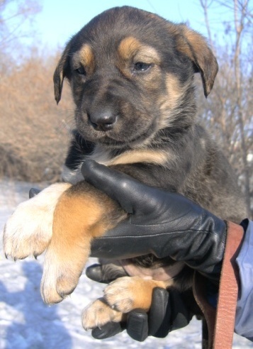 Ищут хозяев 2 щеночка - братик и сестричка, возраст около 1 месяца. Будут около 50-60 см. в холке, судя по маме. Мальчик (черненький) - более гладкошерстный, девочка - попушистей.
