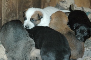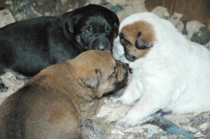 Эти джентельмены родились почти в женский день, а именно 10 марта. Их родители дворяне. Это крепкие, крупные, сильные собаки, настоящие сибиряки, перенояыщие на улице самые лютые морозы. Мылыши родились на улице, вернее в теплой будке, но, думаю, закалку они прошли прекрасную, в отличие от щенков, рожденных в доме. Мамочку мы кормили на 5+++++++, так что малыши у нас вот такие упитанные, как грибы-боровички!