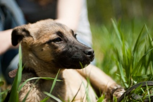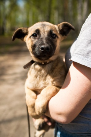 Малипуська еще очень маленький щеночек, я её сфотографирую чуть позже рядом с чем-нибудь, размер чего известен. Например, кроссовком