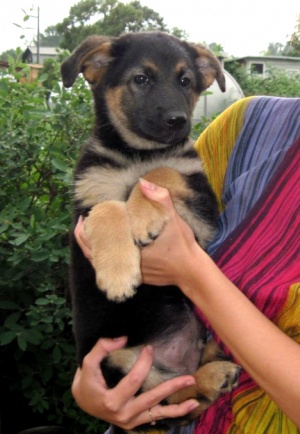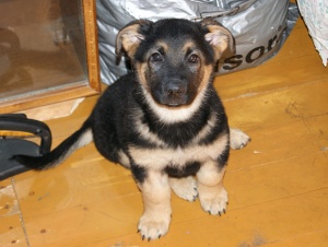 "Я - Барни. Меня так назвали, потому что я напоминаю медвежонка)) Даже во сне я бурчу) А еще меня зовут толстячком и бутузиком, хотя я просто крепкий малыш. Мне 3 месяца. Я буду небольшого роста, как моя мама, примерно до колена. Мама у меня метис таксы и я немного напоминаю таксенка, у меня длинное туловище и короткие лапки. А мордочкой я пошел в отца, когда я был помладше, меня принимали за щенка овчарки.