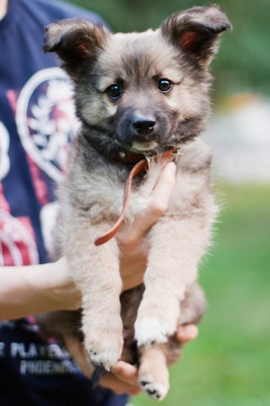 Мальчик, 2 мес. Будет небольшим. Очень сообразительный малыш, игривый, ласковый. Чистый здоровый. Растет смелым и бойким, будет отличным охранником и другом.
