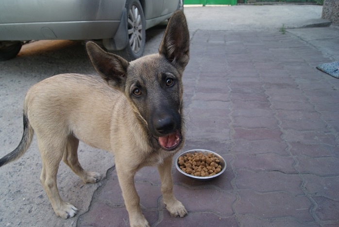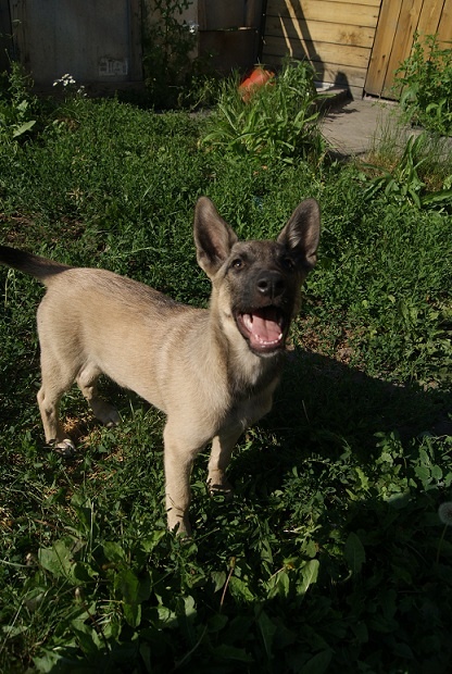 История такая: Вчера ночью с подругой нашли щенка, лежал клубочком возле киоска, трёсся. Продавщица не знала чей он, мы его забрали, отогрели, накормили и отпустили,т.к.родители были против(кошка родила, собака беременна и всегда голодная и могут драться из-за еды), весь день щенок просидел возле забора, не хотел уходить, вечером родители всё-таки разрешили оставить. Сейчас щенок живёт во дворе на мягкой постельке, с игрушками, там еда, вода, на ночь в летнюю кухню, там у нас тепло. О щенке: мальчик, примерно 3-4 месяца, похож на овчарёнка, кушает всё, с собаками играет, кота во дворе не трогает, просто нюхает и отходит, очень позитивный, ласковый, игривый, смышлённый, просто прелесть!