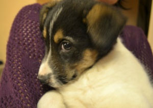 Важно постараться не заболеть. В общем ,будем набираться сил, чтобы можно было ставить прививки. Девочка спокойная. Адаптируется и социализируется очень быстро.Если в первые 2 дня, когда брала её на руки она и дышать, казалось, забывала от страха, удирала и пряталась в самый тёмный угол комнаты, а кормить приходилось, буквально,с рук - за папу, за маму... то сейчас уже почти не боится. Увидев, виляет хвостиком, с удовольствием гладится, облизывает руки, подставляет почесать пузико. Аппетит - отличный. Ест всё!Кашки-овощи с мясом, любит погрызть морковку, особо уважает творог с кефиром. Умненькая. Знает место. Свои собачьи дела, те что помельче, делает на пелёнку, промахивается редко.. крупные - рядом. Сообразила сама.