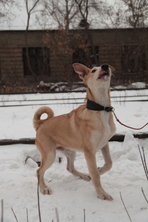 Возраст около года, совершенно здорова, рост чуть меньше лабрадора, очень красивый палевый окрас, носик розовый.