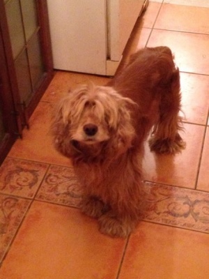 25.01.14 Найдена собака на Весеннем жилмассиве (Первомайский район), кокер-спаниель, рыжая девочка, команды знает, была домашней, умеет проситься на выгул, на вид ей меньше года, активная. Хочу найти старых или новых хозяев как можно быстрее. На фото она после душа - на самом деле шерсть золотистее. Пробыла на улице не болше двух дней. Кто хочет забрать ее к себе, прошу звонить по телефону /del/