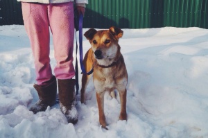 В конце декабря эта доверчивая рыжулька появилась на одной из улиц в Октябрьском районе, истощенная до предела. Выпрашивала еду у прохожих, хватала, не жуя... При этом всегда ласковая, контактная, явно раньше жила с людьми. В канун нового года неравнодушная девушка забрала собаку с улицы, иначе бы та просто погибла в новогодние январские морозы – прятаться ей было негде, подкожного жира совсем нет...