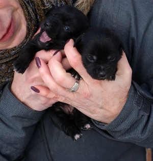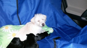 Еще две девочки поехали в свои семьи, вчера отвезли, Кнопа и Малышка.