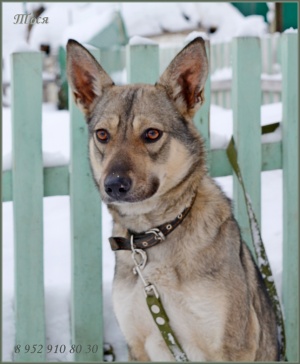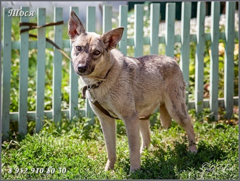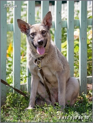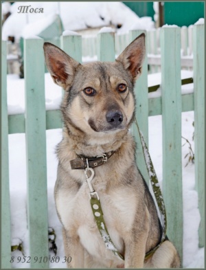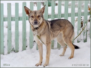Тося молодая, достаточно миниатюрная барышня (не более 45 см в холке). Будет звоночком в частном доме и любимицей всей семьи. Тихая и спокойная. Привита, стерилизована.