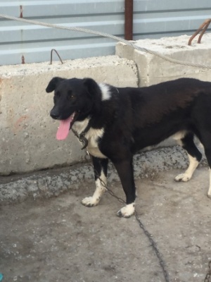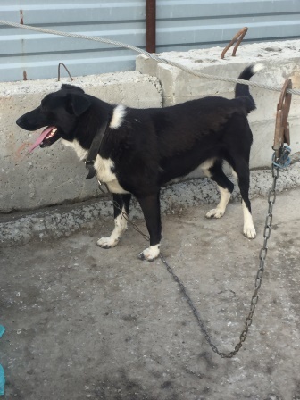 Пристраиваю пса. Молодой кабель живет на стройке, постоянно на цепи, около 2 лет. Цепь, которая ему совсем не по характеру, добрый и ласковый пес, очень коммуникабельный. Любит людей, детей и других собак. Вы бы видели, как он радуется когда к нему приходят в гости! Оближет всего с ног до головы, принесет все свои игрушки и будет скулить, когда соберетесь уходить. Окрас красивый, черный с белыми лапками, пятнышками и белым фартучком. Размер средний, выше колена.