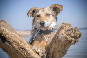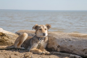 Скуби был спасен с отлова. Первый день после жизни в вольере, мальчик был на море. Щенку 5 мес. Он еще ни разу в жизни не радовался. И не знает как это делать...