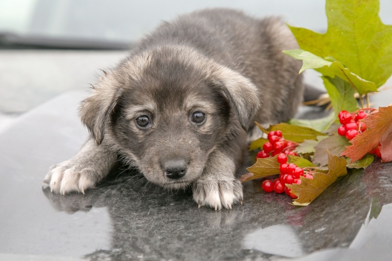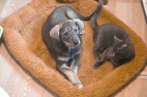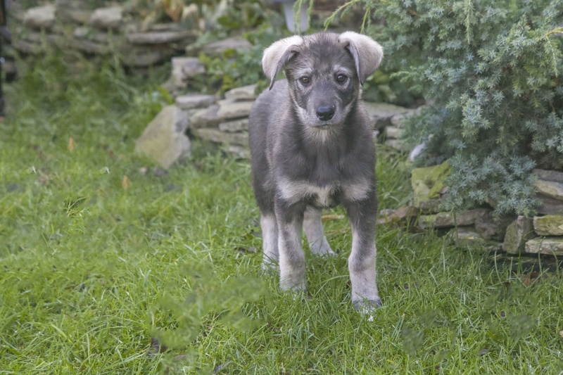 У Тучки пушистая, набивная шубка, поэтому она подойдёт для проживания во дворе. Вырастит примерно по колено.