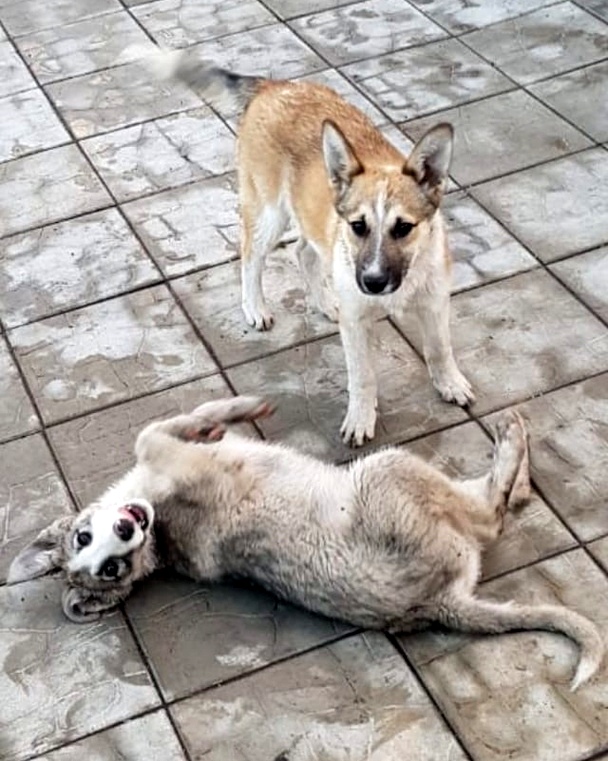 Девчонки суперские! Задорные, контактные. Быстро подружились с обитателями передержки и сразу стали доверять людям.