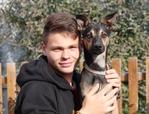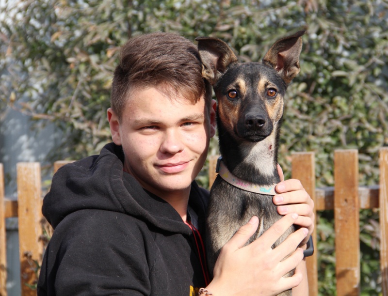 Он похож на оленёнка: тонкие ножки, изящный стан, большие, выразительные глазки. Парень молоденький, ему не больше года, кастрирован, прививки поставлены.