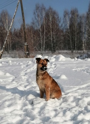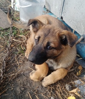Собака ощенилась на территории предприятия. Папа-сторож крупный, мама-дворняжка среднего размера.Неравнодушные люди их кормят. Но зимой щенки не выживут на улице, зима близко...
