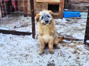 Очаровательная и харизматичная Мандаринка ждёт хозяина. Возраст примерно 3 месяца. Щенок живёт в будке на соломе. Хорошо перенесла морозы, шерсть плотная . Красивый персиковый с белой проволокой окрас. Девчонка и охраняет хорошо и играет . Ест сухой корм, так же варим кашу с обрезью ( без костей!)