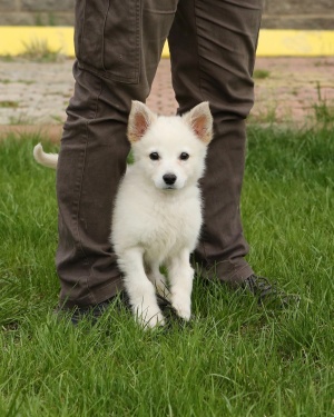 Трогательный, белоснежный щенок Кичиро, что значит удачливый.
