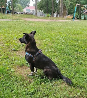 Собака не крупная, в холке 40 см, вес 12 кг. Она полна энергии и жизнерадостности, всегда готова к играм и прогулкам. Ляля невероятно умная собачка, быстро учится новым командам и с удовольствием выполняет их, стремясь угодить человеку.