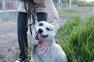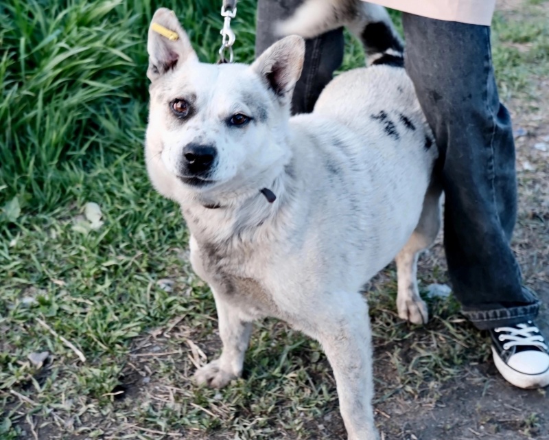 Шейла была домашней, она играет с игрушками, добрая, подставляет пузико на почесушки, доверяет человеку. Играет и с другими собаками. Сильная, активная. Так как сидит на цепи, энергию некуда девать. Ласковая ,послушная. Но и хороший охранник. У нее гладкая, короткая шерсть, поэтому хотелось бы найти дом с теплой будкой (солома на зиму), надежной территорией, прогулками . Белая девочка с конопушками, размер средний, до колена.